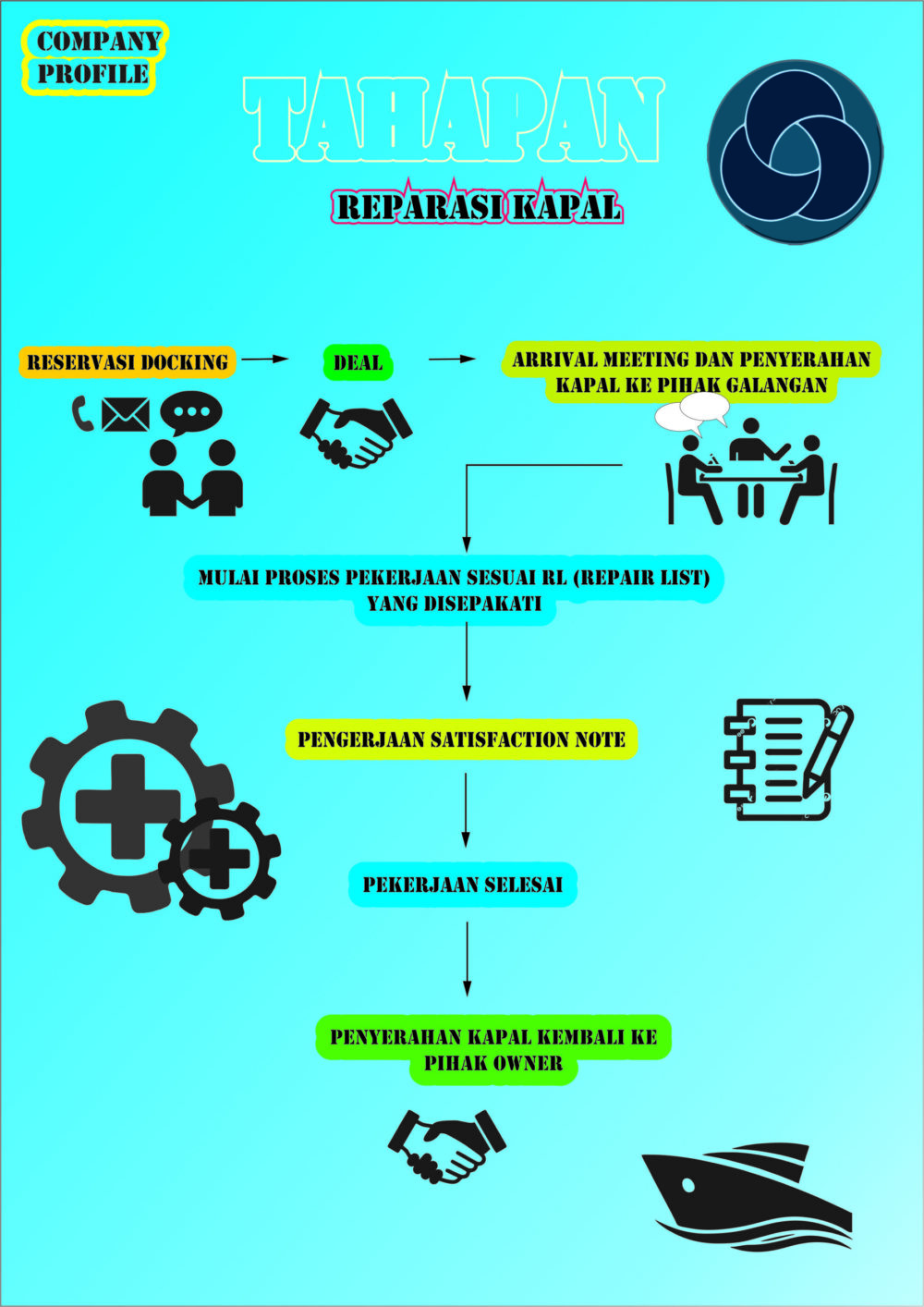 Memberikan jasa pengedokan, perwawatan, perbaikan dan pembangunan kapal dengan standar mutu pelayanan yang diterapkan secara konsisten.